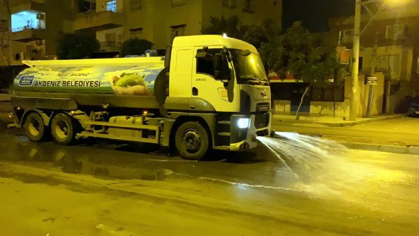 Cadde ve sokaklar da dezenfektanlı su ile yıkanıyor
